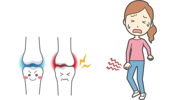 軟骨がすり減り、剥がれた軟骨が、痛みの原因です。